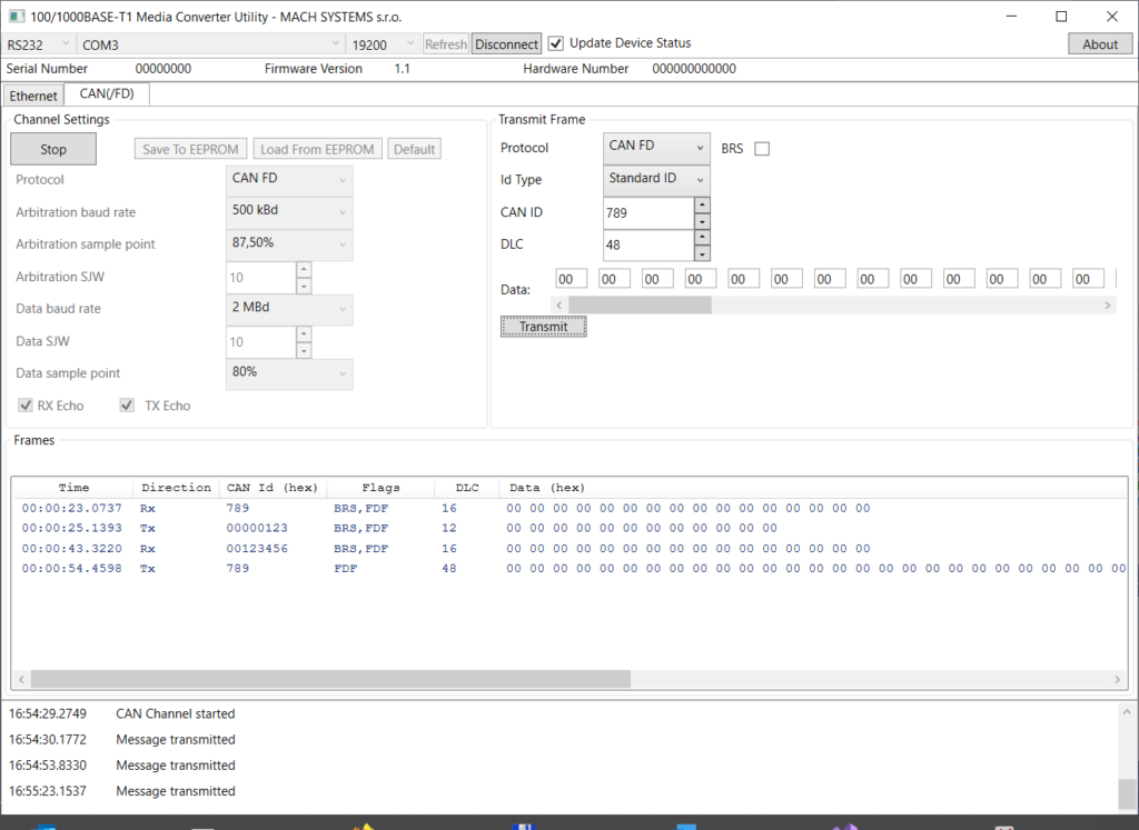 ・メディアコンバータをUSB-CAN(/FD)インターフェースとして使用:CANチャネル、CANおよびCANFDフレームの送受信を設定このアプリケーションはMicrosoftWindowsで使用でき、.NETFrameworkを使用します。